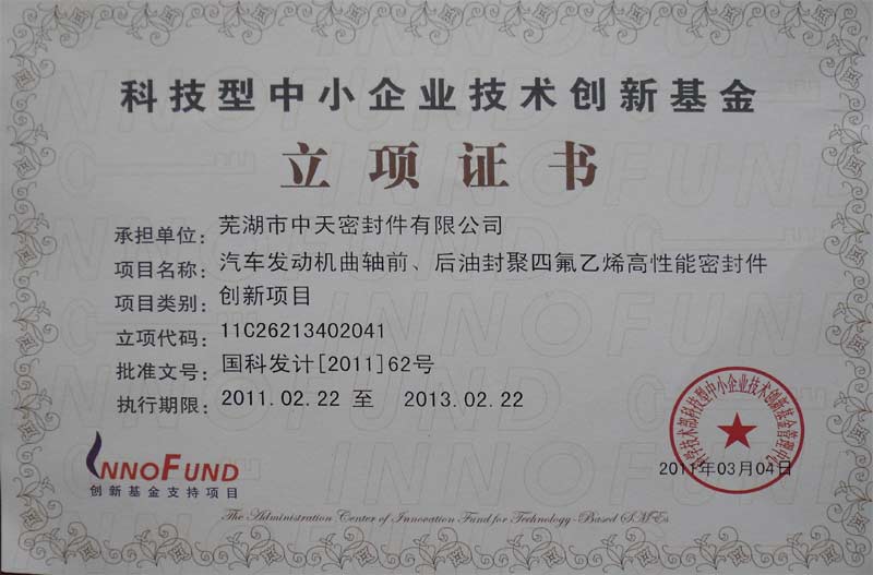 科技型中小企業技術創新基金立項證書
