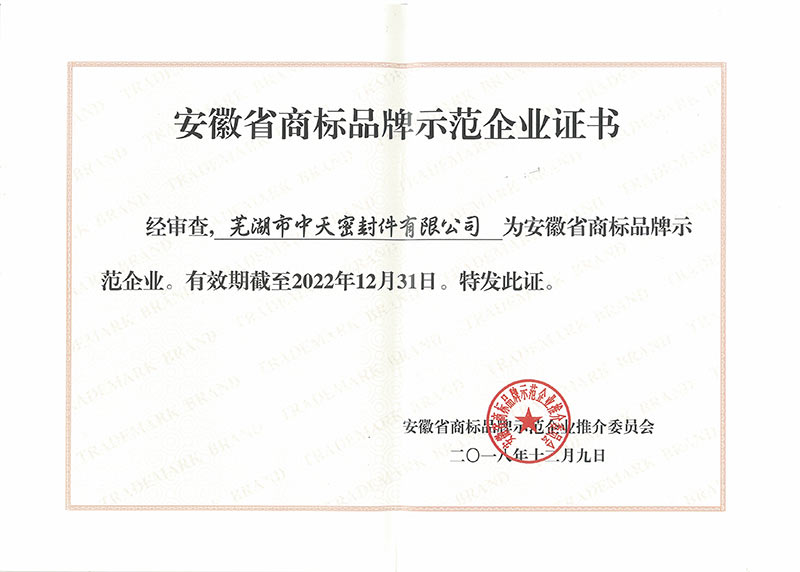 安徽省商標品牌示范企業證書
